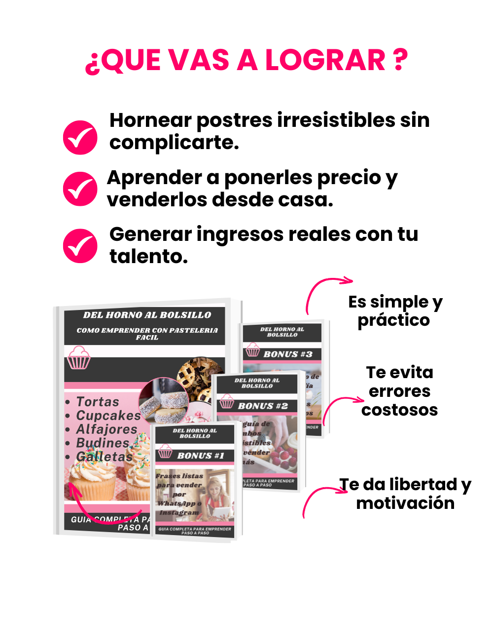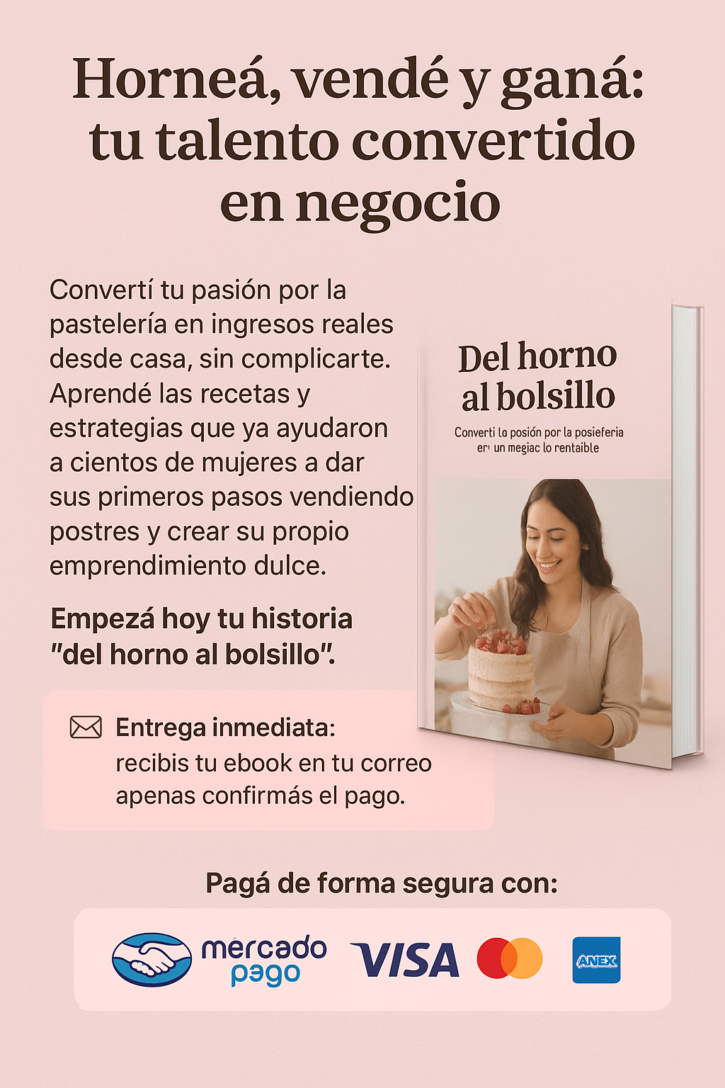 “Siempre me gustó hornear, pero nunca pensé que podía ganar dinero con eso. Este libro me dio el empujón que necesitaba. ¡Ya recuperé mi inversión el primer mes!”
